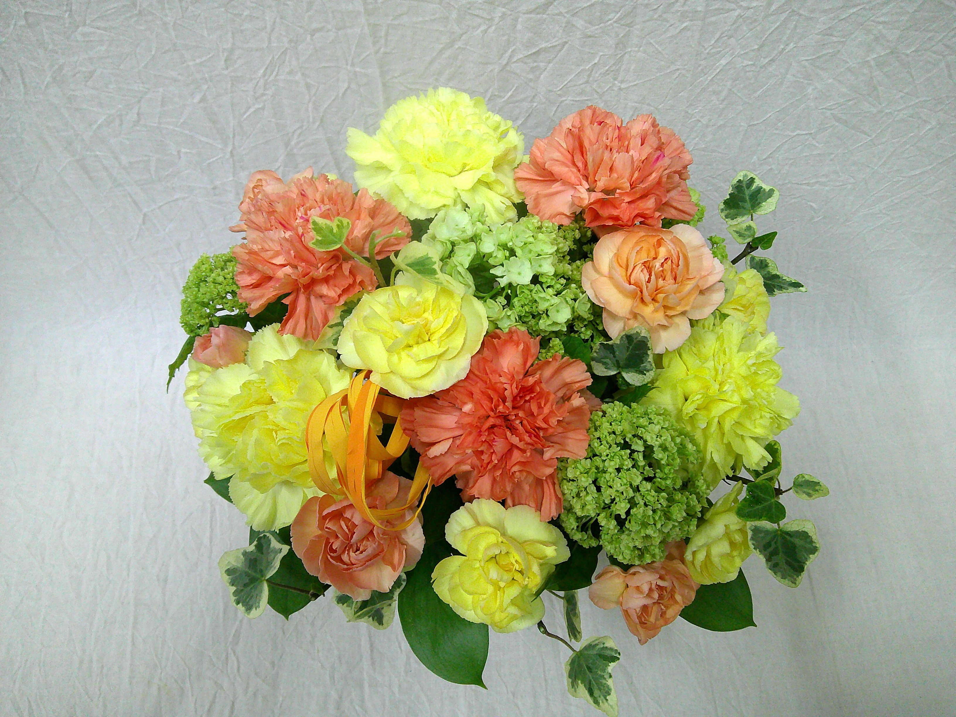 カーネーションいっぱいのアレンジメント(イエロー・オレンジ)