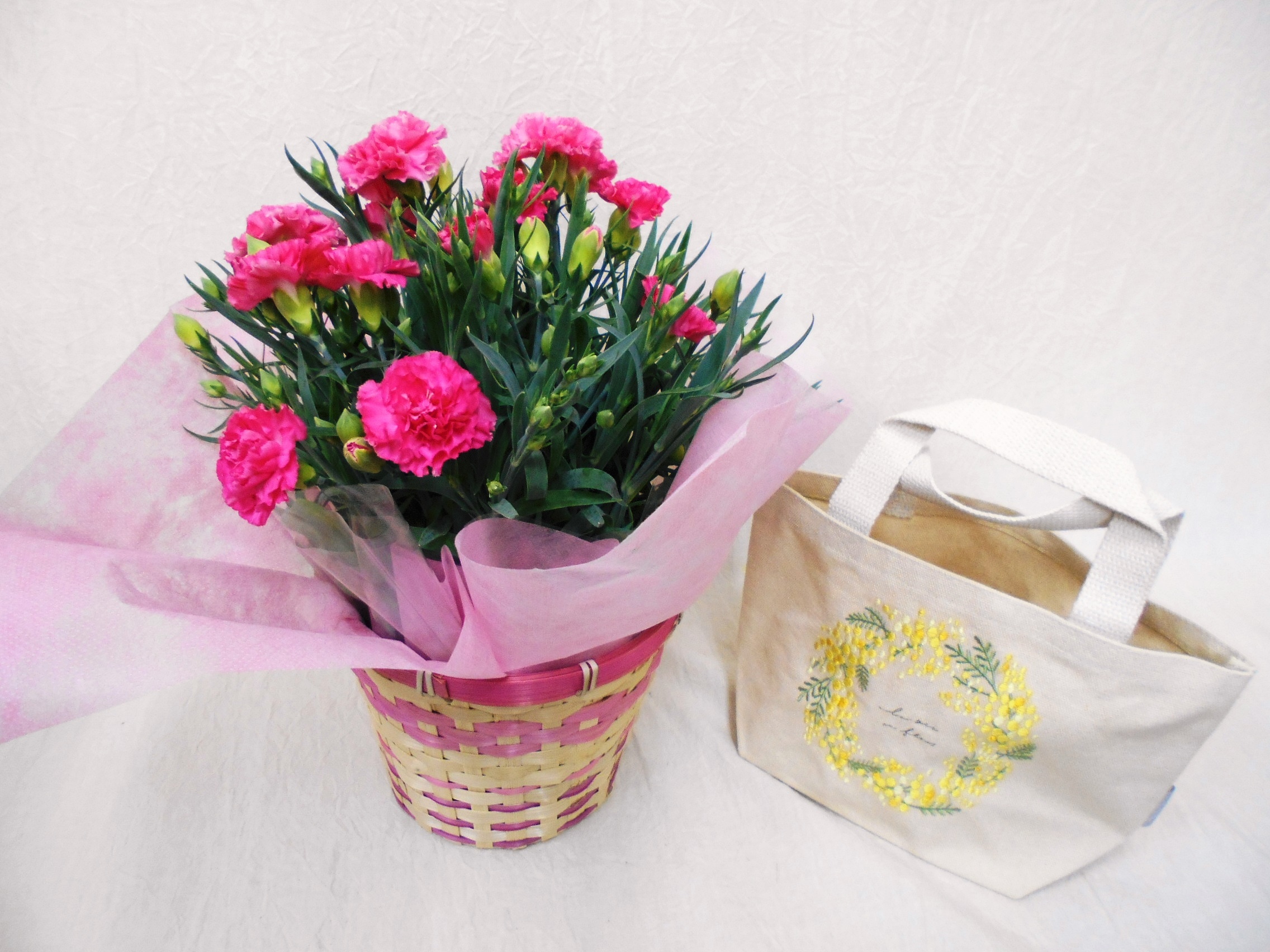 カーネーション(ピンク)&トートバッグ(ミモザ)