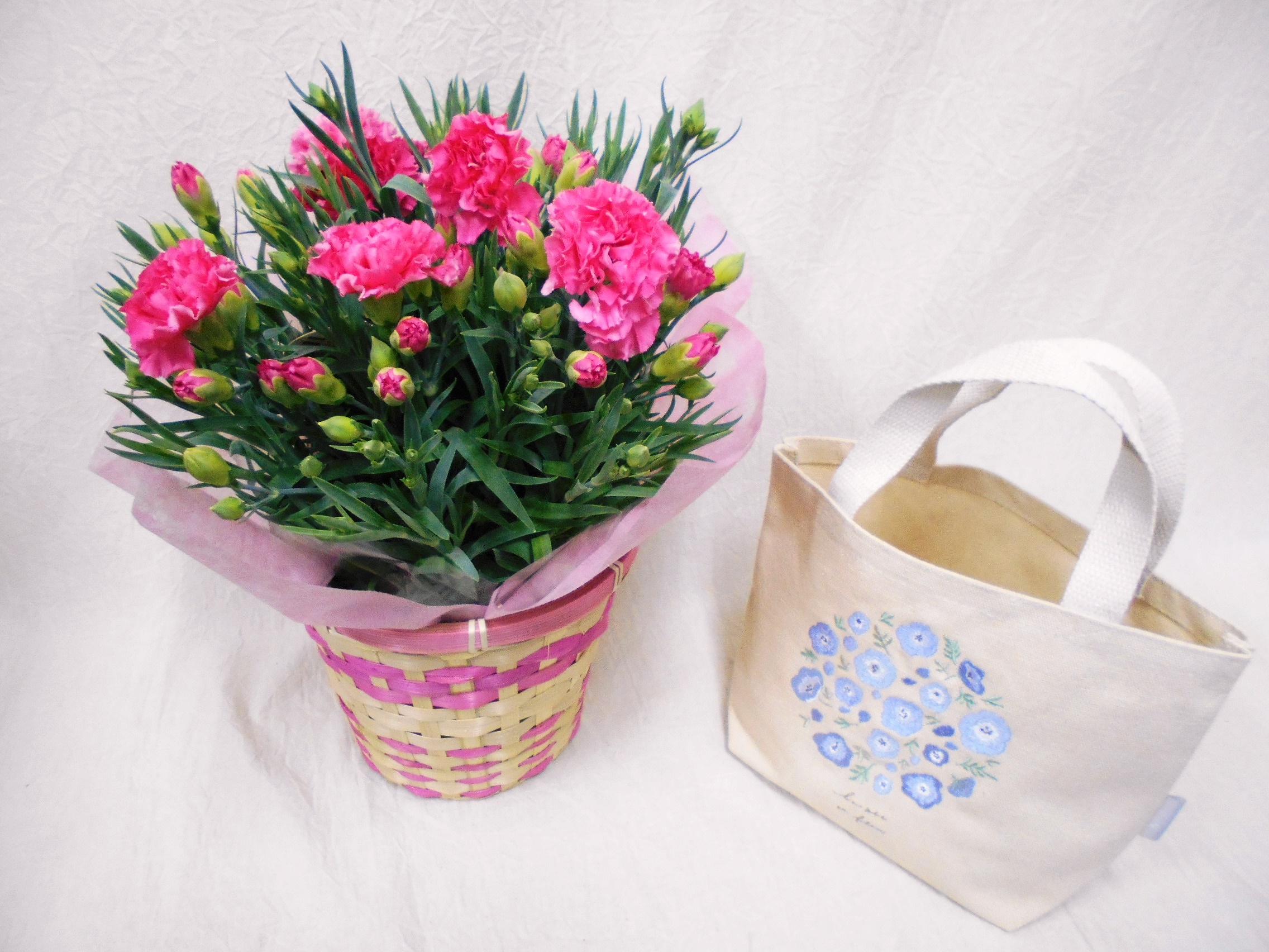 カーネーション(ピンク)&トートバッグ(ネモフィラ)