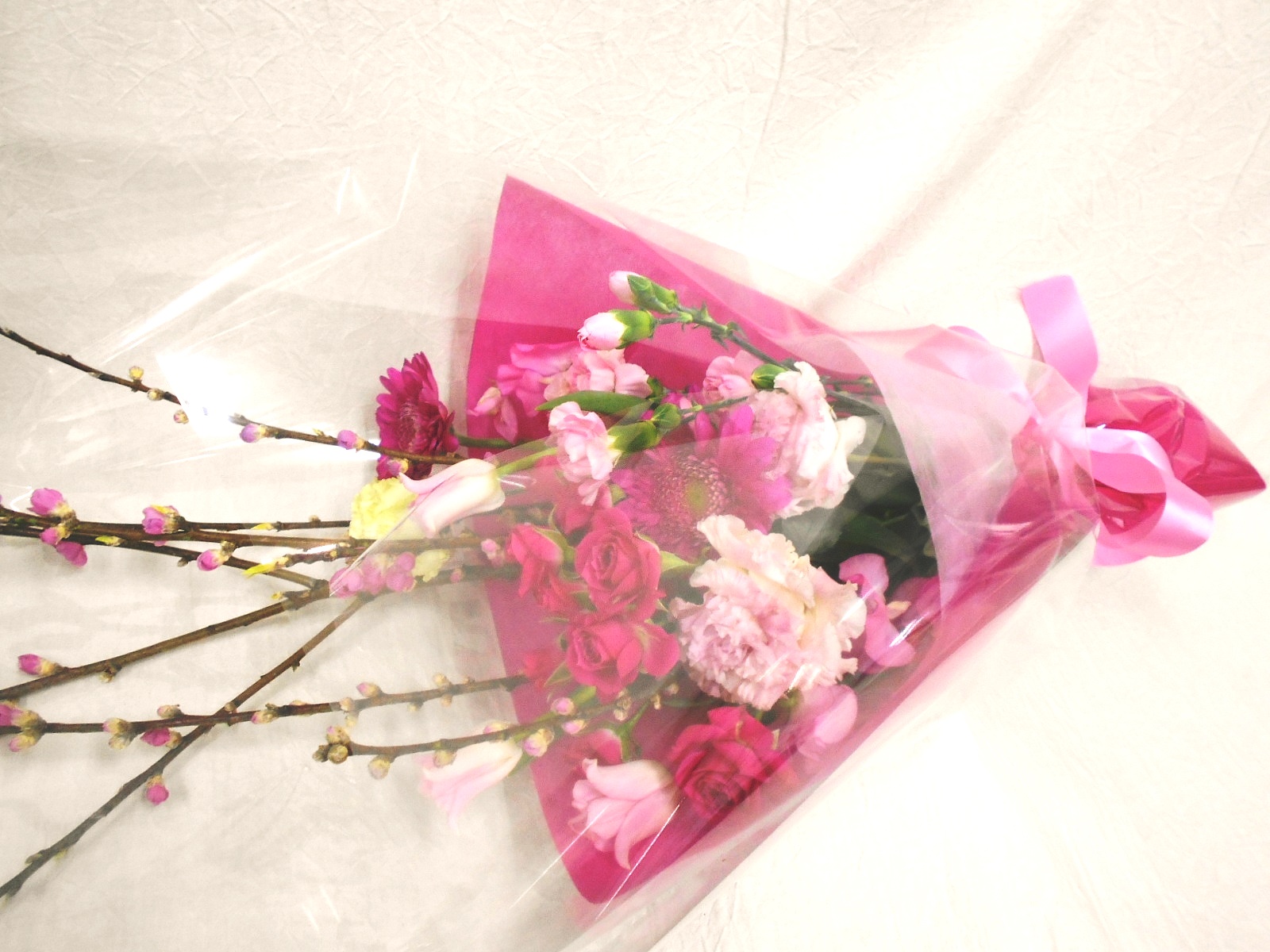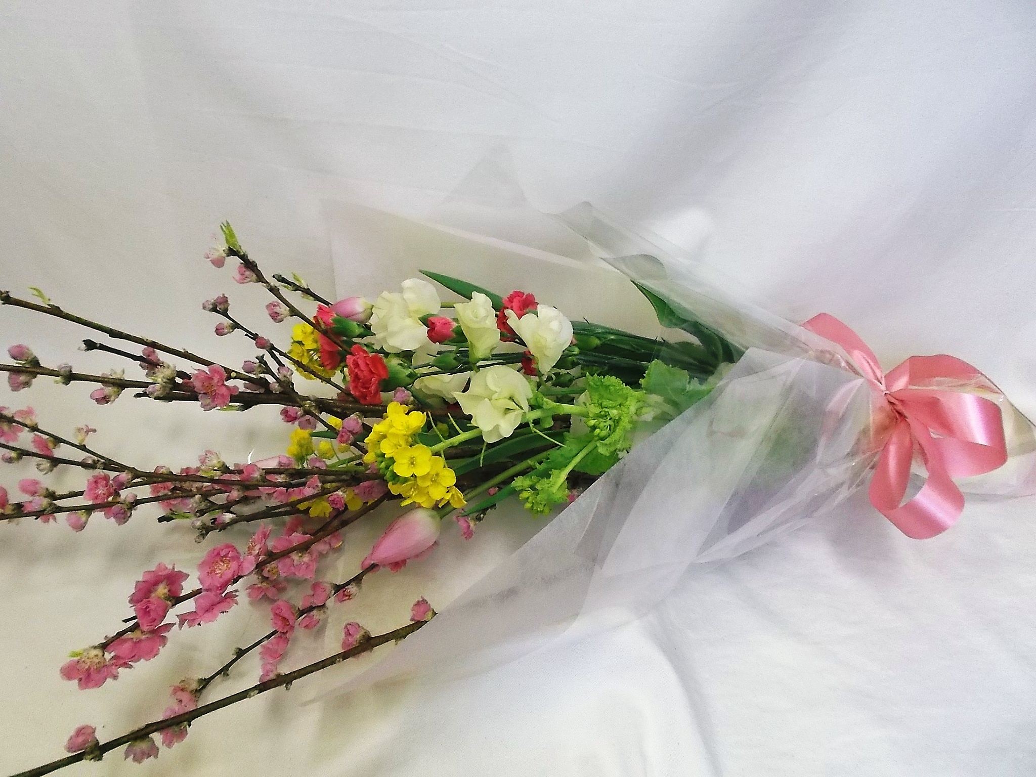 桃が入った春の花束