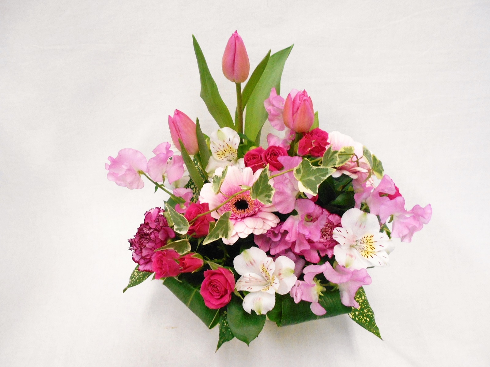 かわいいピンクのチューリップやスイートピーなど