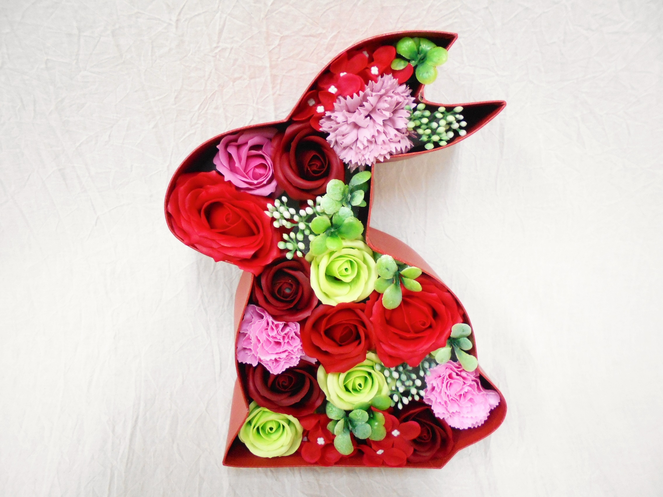 せっけんの成分でできたお花をウサギちゃん型の器に